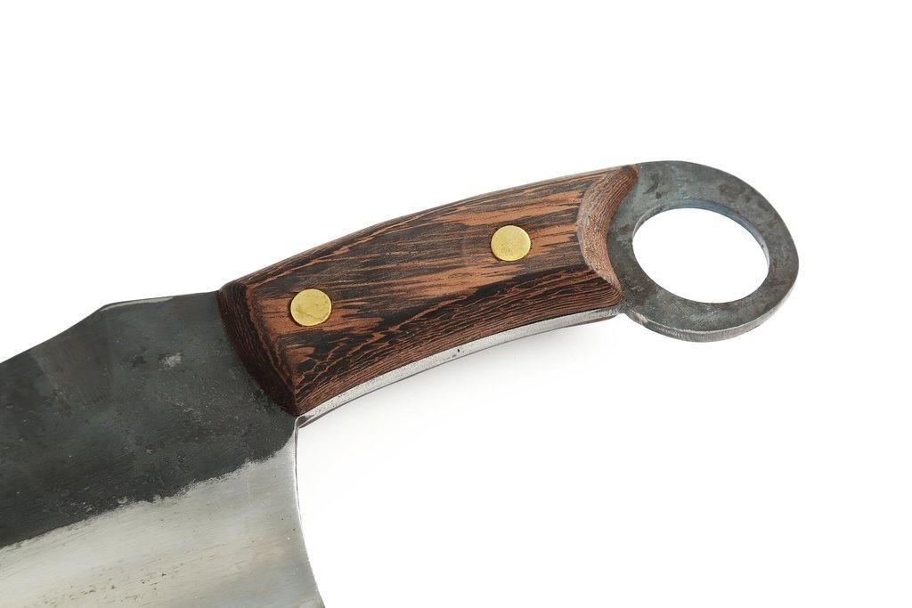 Esta faca eficaz é 100% feita à mão por ferreiros profissionais com aço inoxidável de alto carbono e aço revestido.
